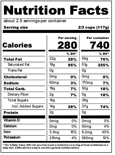 Ingredients: Coconut Milk* (Water, Coconut*, Guar Gum*), Coconut Syrup*, Dark Chocolate Chunks*† (Cocoa Mass*†, Coconut Sugar*, Cocoa Butter*†), Coconut Cream*, Peppermint Extract*, Vanilla Extract*.